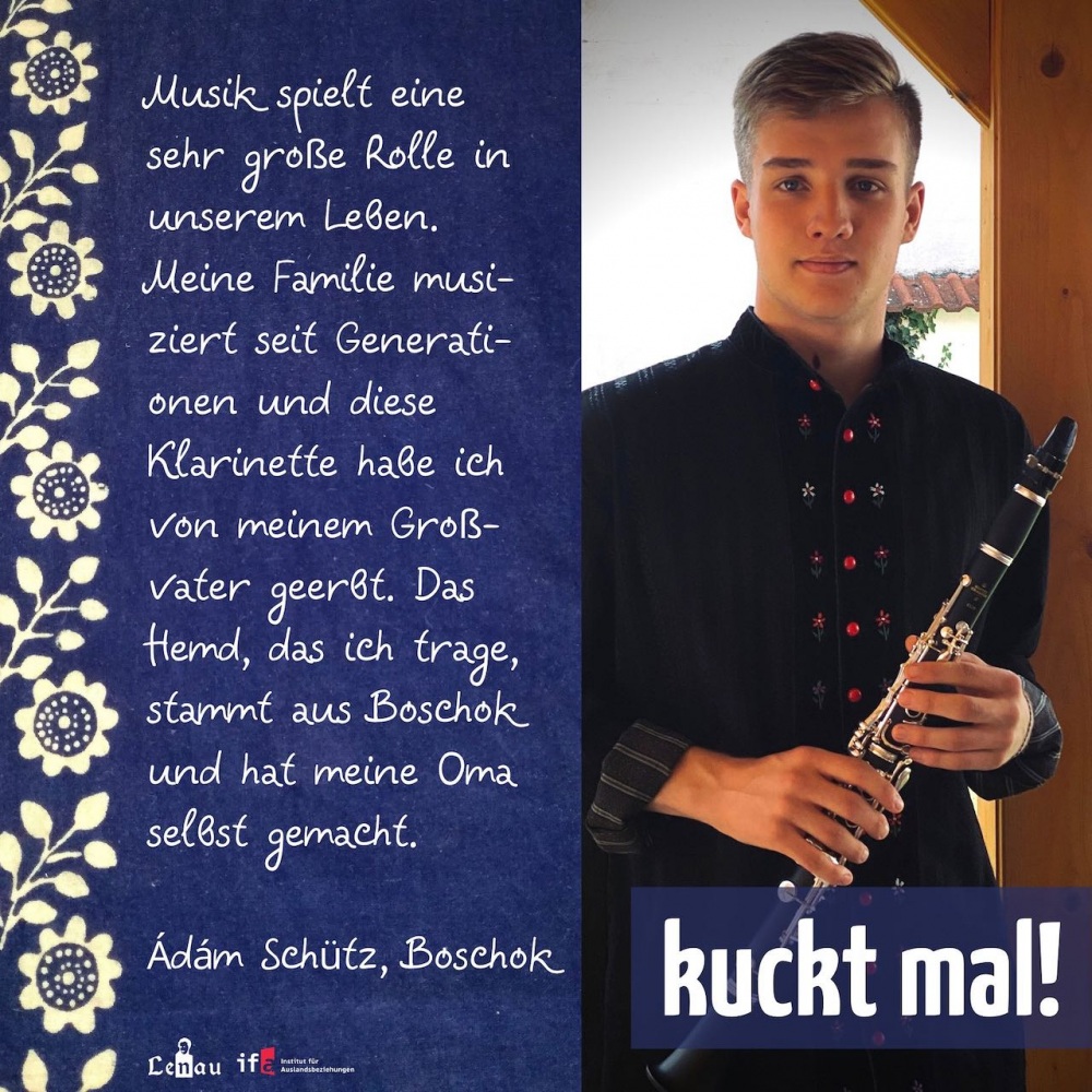 Fontos szerepe van a zenének az életünkben. A családom már generációk óta zenél és ezt a klarinétot a nagypapámtól örököltem. Az bozsoki inget, amit hordok, a nagymamám kézzel készítette.