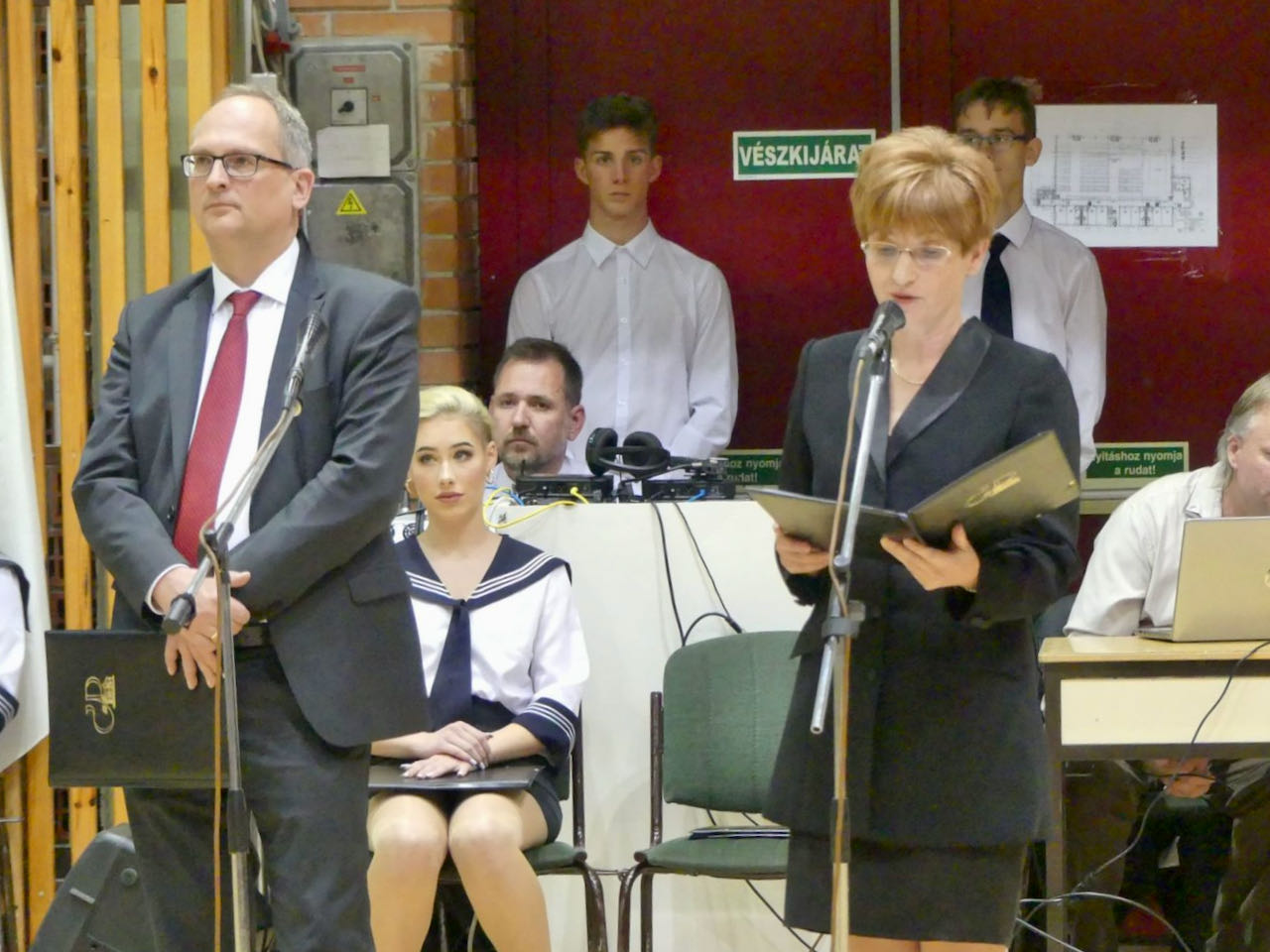 „Számomra ez az első MNÁMK-s szalagavató. Németországban nincs hagyománya, de én örömmel ismerek meg új kultúrákat, új tradíciókat. A szalag nekem az iskolával való kapcsolatotokat jelképezi. Meg azt, hogy tettetek egy újabb lépést előre az életetekben. Felnőttetek, nem vagytok már gyerekek. Legyen motiváció a szalag számotokra a közelgő érettségihez, az előttetek álló feladatokhoz! Szép ez a tradíció, örülök, hogy részese lehetek a mai ünnepnek!” – hallhattuk a német igazgatótól.