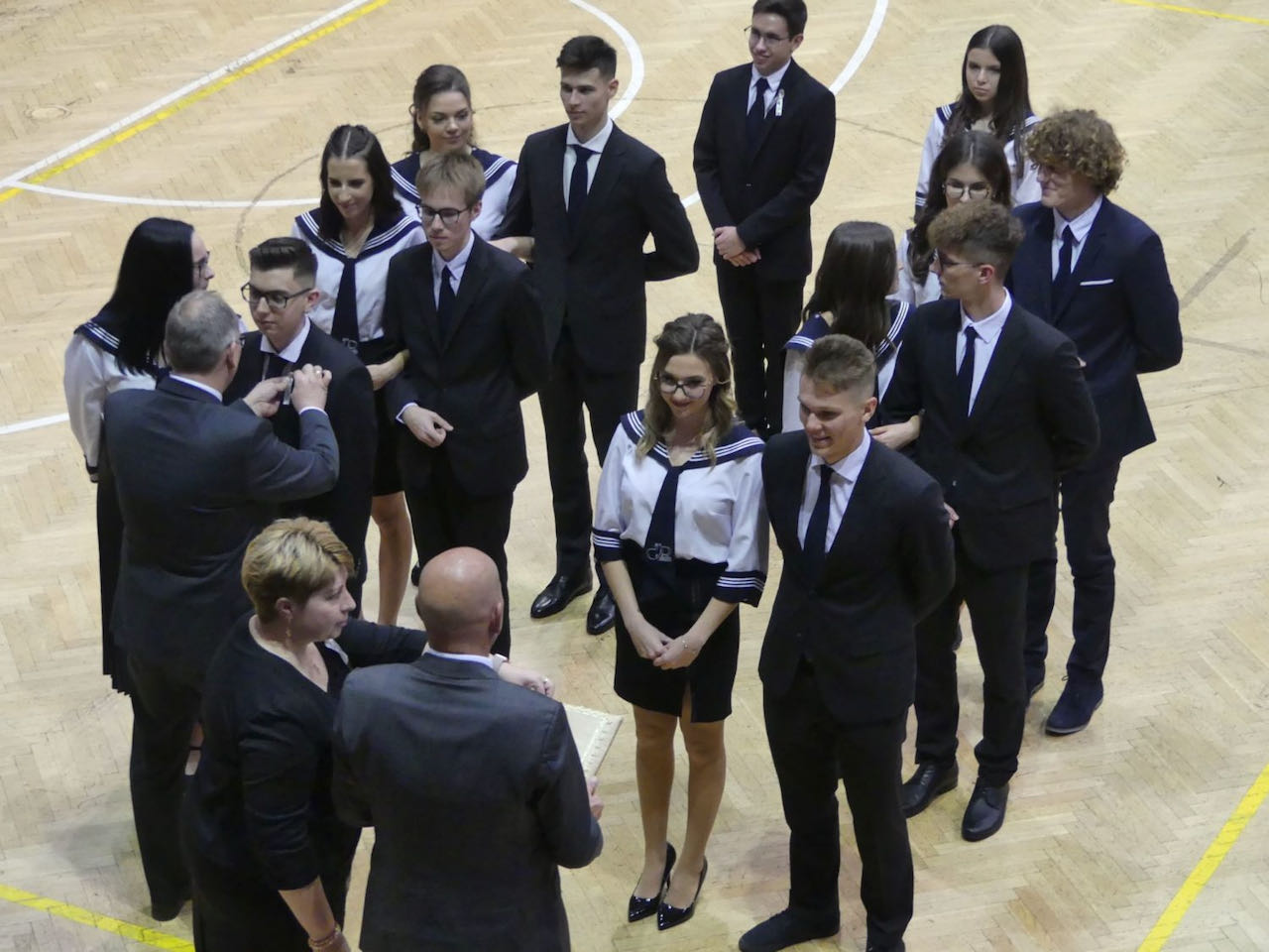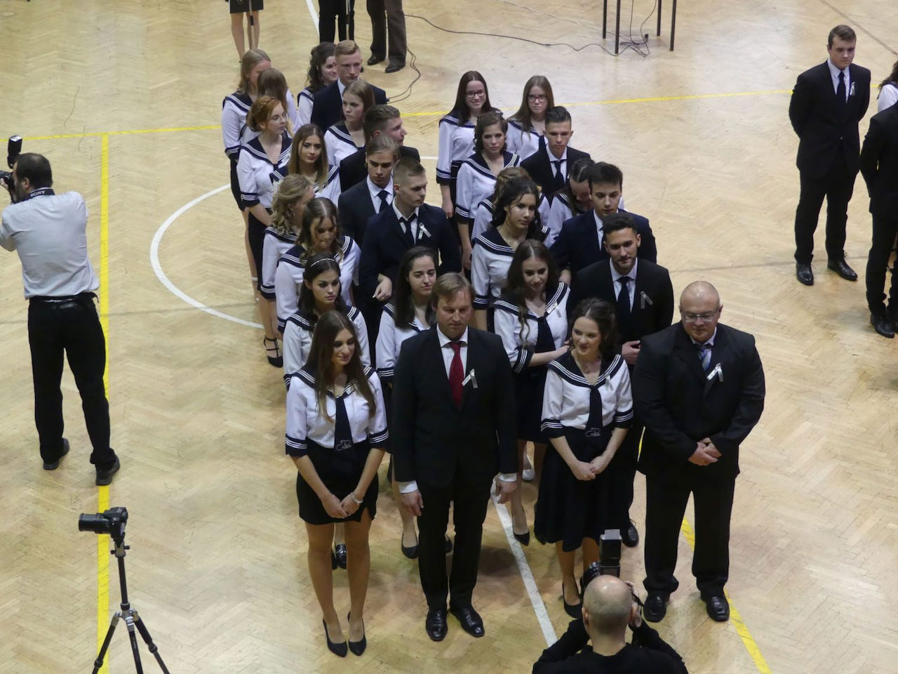 Peter Stübler gondolatai után az intézmény vezetői feltűzték a szalagokat a 12-es diákok és osztályfőnökeik gallérjaira. A rendezvénynek nevet adó ceremóniát követően, mialatt a vendégek az osztályok videó-összeállításait nézték, a végzősök átöltöztek az est fénypontját jelentő tánchoz. A lányok hófehérben, a fiúk fekete nadrágban és fehér ingben táncoltak egy igazán szép koreográfiát, melyet méltóképpen koronázott meg az elmaradhatatlan anya és fia illetve apa és lánya tánc.