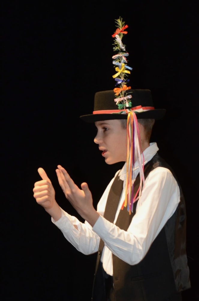 Először a csolnoki Mózes Borbálát hallhattuk, aki a Gubó-Mártai Márta által összeállított Hamcuz fe de Schul (Hazafelé az iskolából) című történetet adta elő; utána a sombereki Móczó Emmaróza következett: Liszili un ti Krote (Liszili és a béka); majd a pilisvörösvári Klein Lénát láthattuk, a történetének címe: Ta pfoara und ta neeha khaplau (A pap és az új káplán).