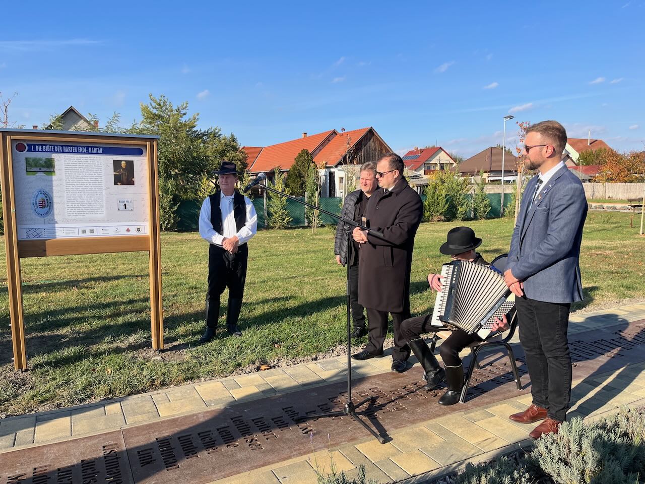 A tanösvény átadó ünnepségen Frőhlich Henrik, a hartai német nemzetiségi önkormányzat elnöke köszöntötte a résztvevőket, és köszönetet mondott mindazoknak, akik a projekt megvalósításában részt vettek. Hangsúlyozta: a tanösvény nem csupán információs táblák sora, hanem a hartai közösség közös történetének, értékeinek és 300 éves múltjának szimbóluma, amely a hit, az összetartozás és a hagyományok megőrzésének erejét hirdeti. Kiemelte, hogy a projekt több hónapos, sok szereplő együttműködésével megvalósult közös munka eredménye, amelyért köszönet illeti mindazokat, akik tudásukkal, elhivatottságukkal és szívvel-lélekkel végzett munkájukkal hozzájárultak a megvalósításhoz.