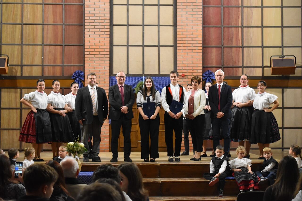 Az okleveleket Soltész Miklós adta át. Köszöntőjében gratulált a két diáknak és köszönetet mondott szüleiknek, tanáraiknak. „Örömmel jöttem Bajára. Az MNÁMK pedagógusai és diákjai nagyszerű munkát végeznek a német nemzetiségi hagyományok ápolása terén. Ezt a tevékenységet a jövőben is támogatni fogjuk. A most látott műsor és a két díjazott megerősít abban, hogy lehet valaki egyszerre jó tanuló és szülőföldje nemzetiségéért tettre kész fiatal”, mondta az államtitkárt.