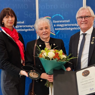 A magyarországi német közösség 2025. évi díjazottja Eszes Mária Margit, aki közel két évtizede Érd Város Német Nemzetiségi Önkormányzatának elnöke. Munkássága példaértékű: