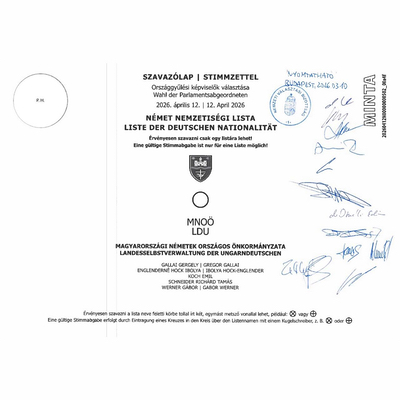 A Nemzeti Választási Bizottság március 10-én megjelent határozatában jóváhagyta a német nemzetiségi listás szavazólap adattartalmát a 2026. április 12-én esedékes országgyűlési választásokra.